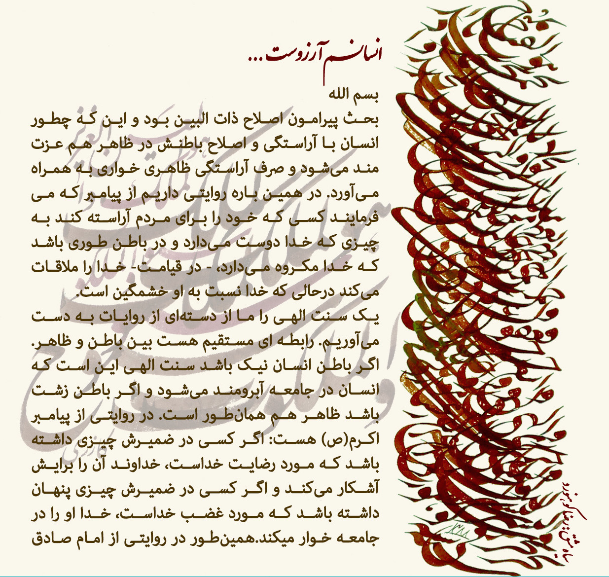 قرآن که ریشه واژگانی اش "قرء" است، در واقع انسانِ قرائت شده ست.. وقتی قرآن رو میخونیم داریم خودمون رو بازخوانی میکنیم. باید همه آیات رو به خودمون بگیریم، حس کنیم به خودمون نازل شده.اما بعضیا انقد از خودشون دور شدن که قرآن براشون "لایزید الظالمین الا خسارا"* می شه.